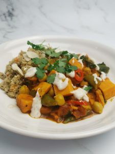 • Lunch – Sweet potato, chickpea and kale Moroccan tagine, with apricot quinoa and yoghurt tahini dip.