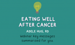 Eat Well During Cancer (2020), A webinar with RD Adele Hug and Melissa Mogor going through the role of food and nutrition during cancer and cancer treatments