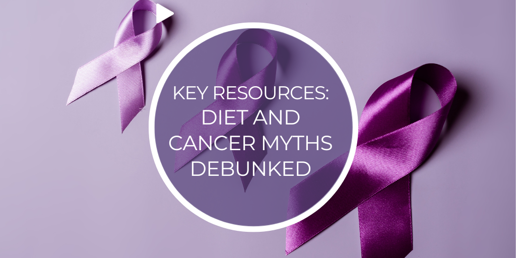 Following on from our webinar ‘Nutrition and Cancer Myths Debunked‘, we’ve pulled together some of the key resources and references discussed within the webinar. If you missed the live webinar, you can register to watch the recording.